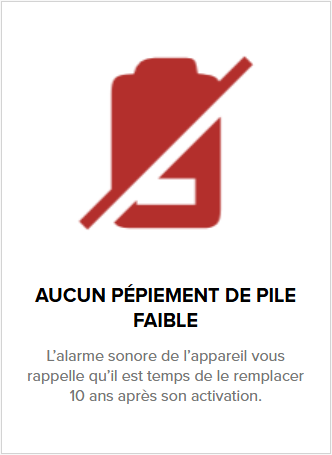 - Pile (10 ans sans soucis) - Aucune pile à remplacer pendant 10 ans.† Vous permet d’éviter les inconvénients liés au remplacement de la pile pendant toute la durée de vie de l’appareil.